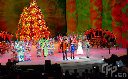 (左起)林依輪、孫悅、呂薇、解曉東排練歌舞《春節(jié)好》